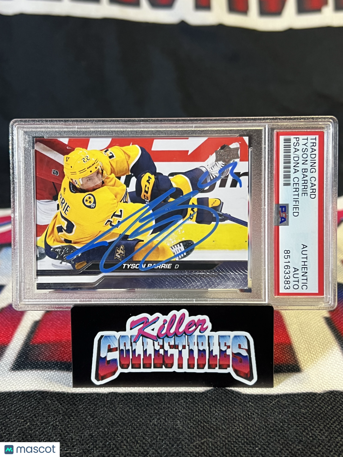 You are purchasing a 2022-23 Upper Deck Series 1 Tyson Barrie PSA A. You will receive the exact item in the photographs. Raw cards may include imperfections like edge and/or corner wear, light scratches and/or dimples. Graded cards may include light scratches and/or scuffs on the slabs. Please look over the pictures closely And feel free to reach out with any questions. Thank you for looking. Listed With Mascot.