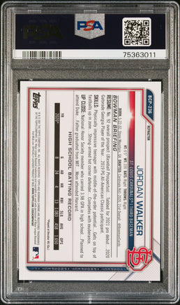 You are purchasing a 2021 Bowman Chrome Prospects Jordan Walker #BCP236 /499 PSA 9. You will receive the exact card in the photographs. Thank you for looking. Listed With Mascot.