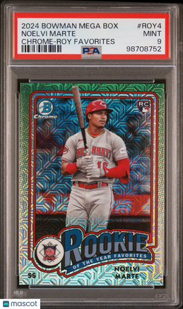 You are purchasing a 2024 Bowman Mega Box Chrome Rookie Of The Year Favorites Noelvi Marte PSA 9. You will receive the exact item in the photographs. Raw cards may include imperfections like edge and/or corner wear, light scratches and/or dimples. Graded cards may include light scratches and/or scuffs on the slabs. Please look over the pictures closely And feel free to reach out with any questions. Thank you for looking. Listed With Mascot.
