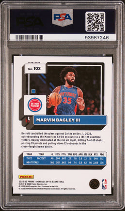 You are purchasing a 2022 Panini Donruss Optic Marvin Bagley III Red Sparkle PSA 9. You will receive the exact item in the photographs. Raw cards may include imperfections like edge and/or corner wear, light scratches and/or dimples. Graded cards may include light scratches and/or scuffs on the slabs. Please look over the pictures closely And feel free to reach out with any questions. Thank you for looking. Listed With Mascot.