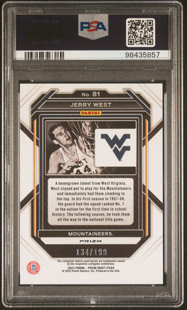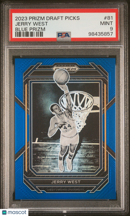 You are purchasing a 2023 Panini Prizm Draft Picks Jerry West Blue /199 PSA 9. You will receive the exact item in the photographs. Raw cards may include imperfections like edge and/or corner wear, light scratches and/or dimples. Graded cards may include light scratches and/or scuffs on the slabs. Please look over the pictures closely And feel free to reach out with any questions. Thank you for looking. Listed With Mascot.