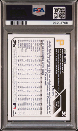 You are purchasing a 2023 Topps Oneil Cruz Future Stars PSA 10. You will receive the exact item in the photographs. Raw cards may include imperfections like edge and/or corner wear, light scratches and/or dimples. Graded cards may include light scratches and/or scuffs on the slabs. Please look over the pictures closely And feel free to reach out with any questions. Thank you for looking. Listed With Mascot.