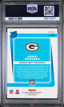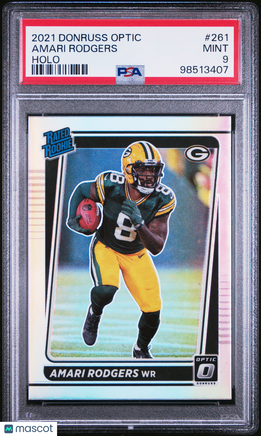 You are purchasing a 2021 Panini Donruss Optic Amari Rodgers Holo Rated Rookie PSA 9. You will receive the exact item in the photographs. Raw cards may include imperfections like edge and/or corner wear, light scratches and/or dimples. Graded cards may include light scratches and/or scuffs on the slabs. Please look over the pictures closely And feel free to reach out with any questions. Thank you for looking. Listed With Mascot.