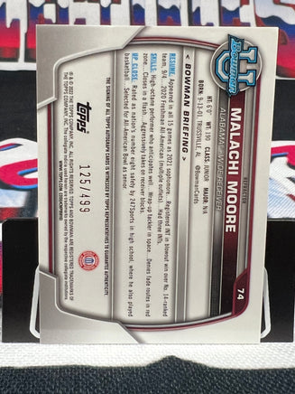 You are purchasing a 2022 Bowman University Malachi Moore 1st Bowman Refractor Auto . You will receive the exact item in the photographs. Raw cards may include imperfections like edge and/or corner wear, light scratches and/or dimples. Graded cards may include light scratches and/or scuffs on the slabs. Please look over the pictures closely And feel free to reach out with any questions. Thank you for looking. Listed With Mascot.