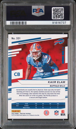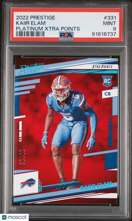 You are purchasing a 2022 Panini Prestige Kaiir Elam Platinum Xtra Points /25 PSA 9. You will receive the exact item in the photographs. Raw cards may include imperfections like edge and/or corner wear, light scratches and/or dimples. Graded cards may include light scratches and/or scuffs on the slabs. Please look over the pictures closely And feel free to reach out with any questions. Thank you for looking. Listed With Mascot.