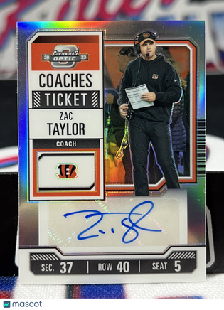 You are purchasing a 2023 Panini Contenders Optic Zac Taylor Silver Prizm #08/50 Autographed . You will receive the exact item in the photographs. Raw cards may include imperfections like edge and/or corner wear, light scratches and/or dimples. Graded cards may include light scratches and/or scuffs on the slabs. Please look over the pictures closely And feel free to reach out with any questions. Thank you for looking. Listed With Mascot.