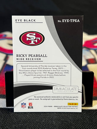 You are purchasing a 2024 Panini Immaculate Collection Eye Black Ricky Pearsall Rookie 09/10 Autograph Patch RC. You will receive the exact item in the photographs. Raw cards may include imperfections like edge and/or corner wear, light scratches and/or dimples. Graded cards may include light scratches and/or scuffs on the slabs. Please look over the pictures closely And feel free to reach out with any questions. Thank you for looking. Listed With Mascot.