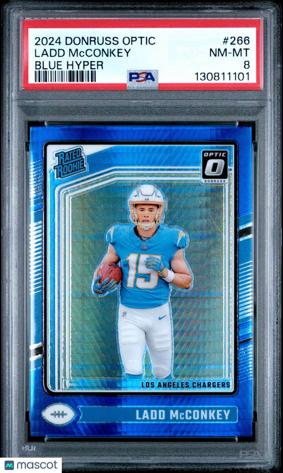 2024 Panini Donruss Optic Ladd Mcconkey Blue Hyper Rookie PSA 8