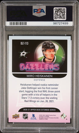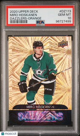You are purchasing a 2020 Upper Deck Dazzlers Miro Heiskanen Dazzlers Orange PSA 10. You will receive the exact item in the photographs. Raw cards may include imperfections like edge and/or corner wear, light scratches and/or dimples. Graded cards may include light scratches and/or scuffs on the slabs. Please look over the pictures closely And feel free to reach out with any questions. Thank you for looking. Listed With Mascot.