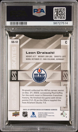 You are purchasing a 2023 Upper Deck Extended Series Silver Skates Leon Draisaitl Silver Skates PSA 8. You will receive the exact item in the photographs. Raw cards may include imperfections like edge and/or corner wear, light scratches and/or dimples. Graded cards may include light scratches and/or scuffs on the slabs. Please look over the pictures closely And feel free to reach out with any questions. Thank you for looking. Listed With Mascot.