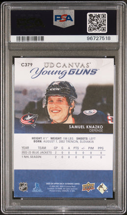 You are purchasing a 2023 Upper Deck UD Canvas Samuel Knazko PSA 9. You will receive the exact item in the photographs. Raw cards may include imperfections like edge and/or corner wear, light scratches and/or dimples. Graded cards may include light scratches and/or scuffs on the slabs. Please look over the pictures closely And feel free to reach out with any questions. Thank you for looking. Listed With Mascot.