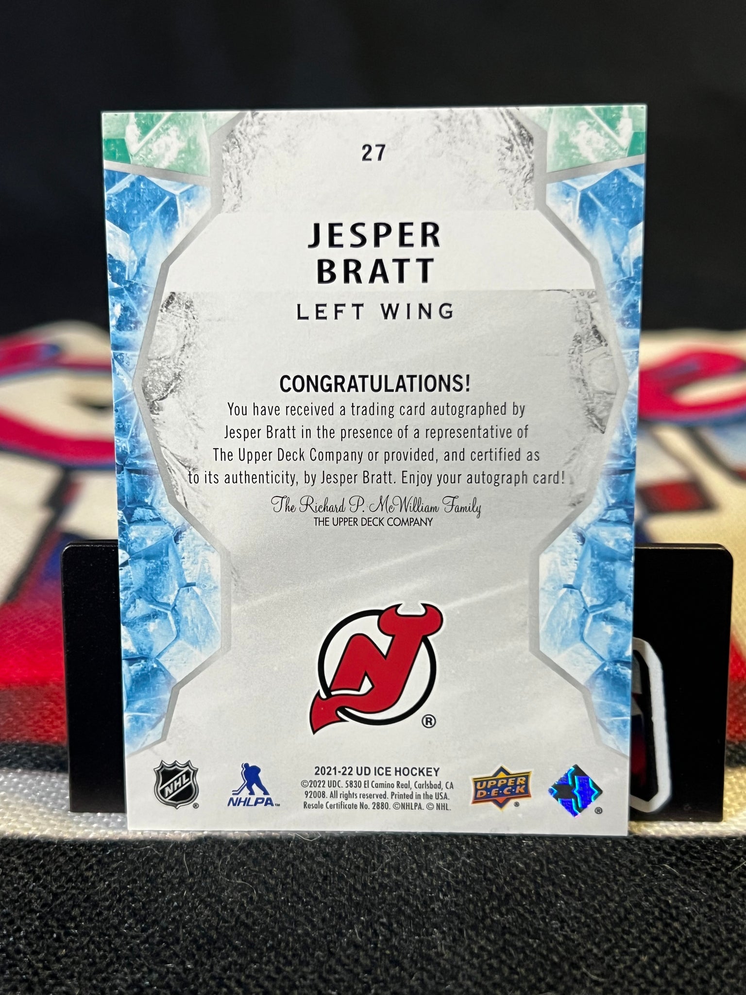 You are purchasing a 2021-22 Upper Deck Ice Jesper Bratt. You will receive the exact item in the photographs. Raw cards may include imperfections like edge and/or corner wear, light scratches and/or dimples. Graded cards may include light scratches and/or scuffs on the slabs. Please look over the pictures closely And feel free to reach out with any questions. Thank you for looking. Listed With Mascot.