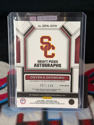 You are purchasing a 2023 Panini Prizm Draft Picks Autographs Onyeka Okongwu Red Prizm Sticker 3/149. You will receive the exact item in the photographs. Raw cards may include imperfections like edge and/or corner wear, light scratches and/or dimples. Graded cards may include light scratches and/or scuffs on the slabs. Please look over the pictures closely And feel free to reach out with any questions. Thank you for looking. Listed With Mascot.