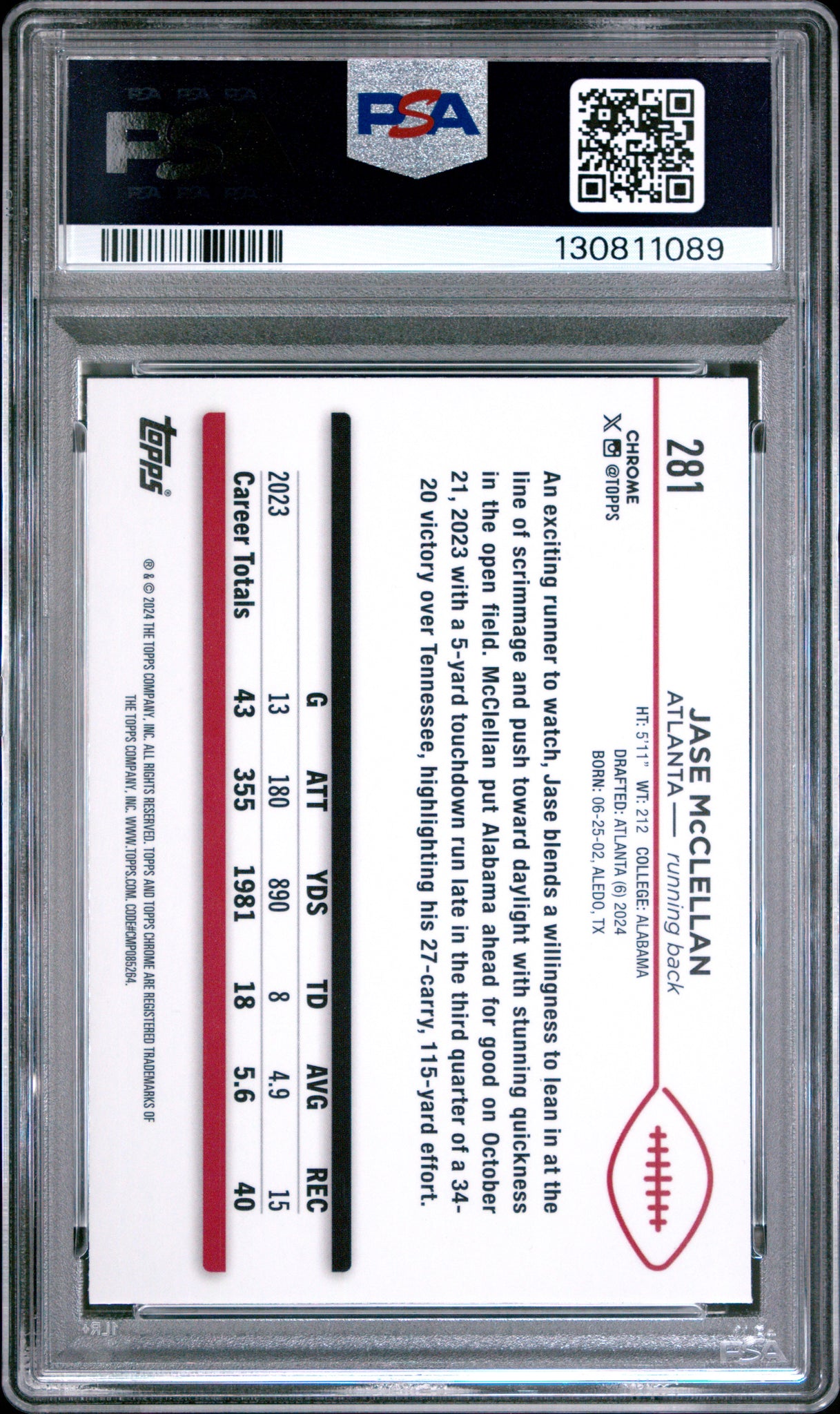 You are purchasing a 2024 Topps Chrome Jase Mcclellan Aqua Refractor Rookie 073/199 PSA 9. You will receive the exact item in the photographs. Raw cards may include imperfections like edge and/or corner wear, light scratches and/or dimples. Graded cards may include light scratches and/or scuffs on the slabs. Please look over the pictures closely And feel free to reach out with any questions. Thank you for looking. Listed With Mascot.